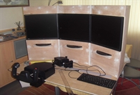 Après avoir fixé le support des écrans, nous remarquons qu'il est trop près du futur tableau de bord. D'autres trous ont été fait pour le reculer. La distance entre le tableau de bord et le support des écrans est de 50 cm.